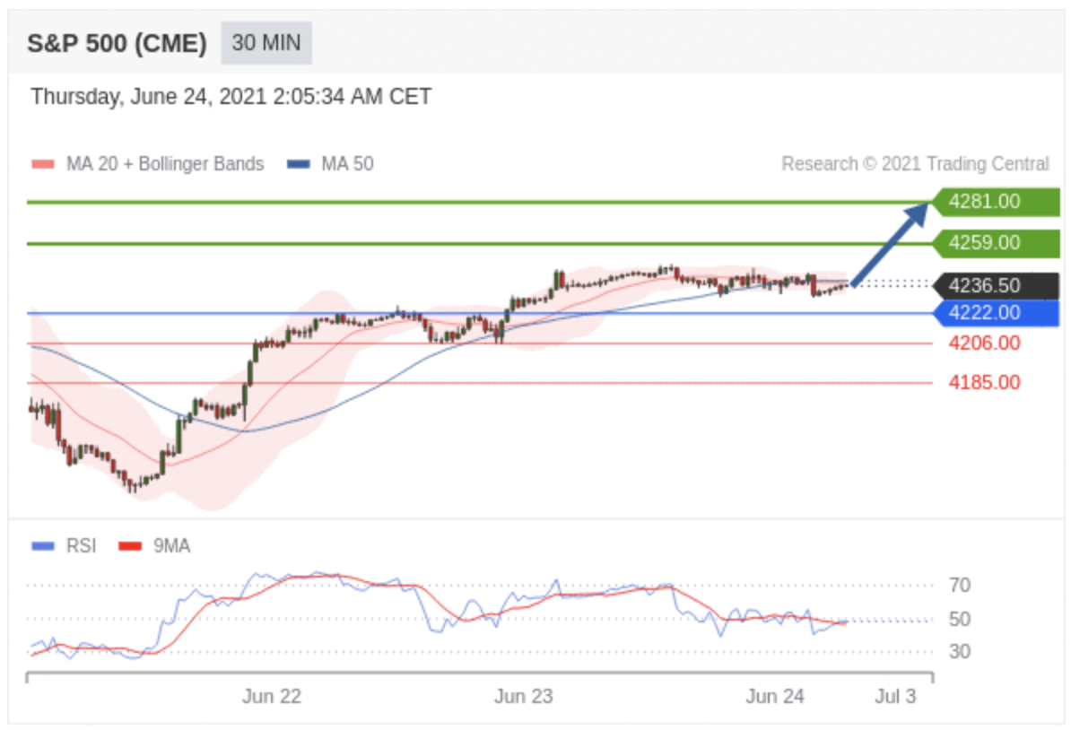 Long positions above 4222.00 with targets at 4259.00 & 4281.00 in extension.