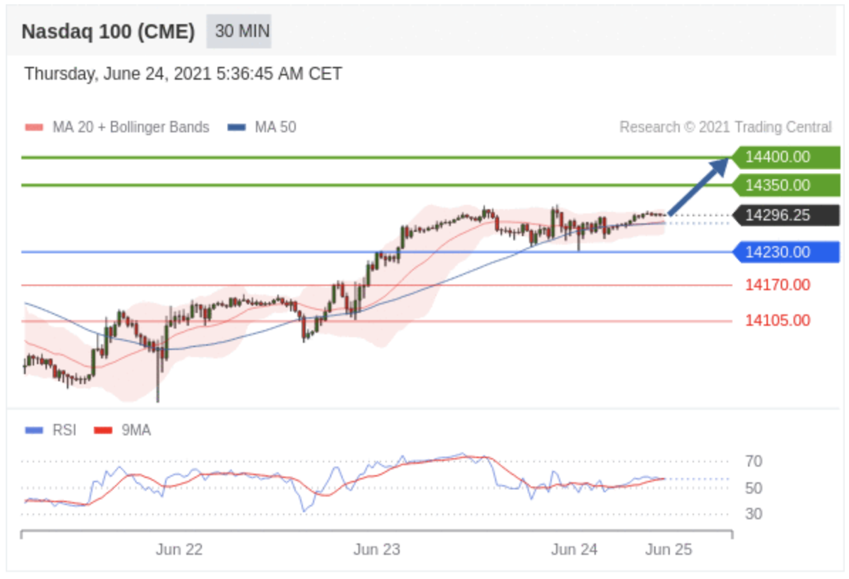 Long positions above 14230.00 with targets at 14350.00 & 14400.00 in extension.