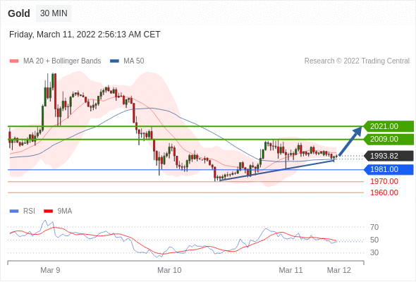 Long positions above 1981.00 with targets at 2009.00 & 2021.00 in extension.
