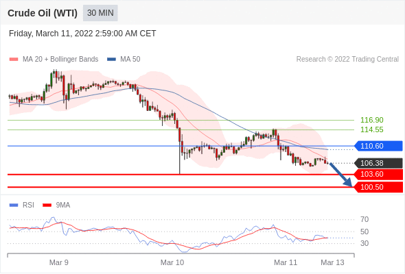 Short positions below 110.60 with targets at 103.60 & 100.50 in extension.