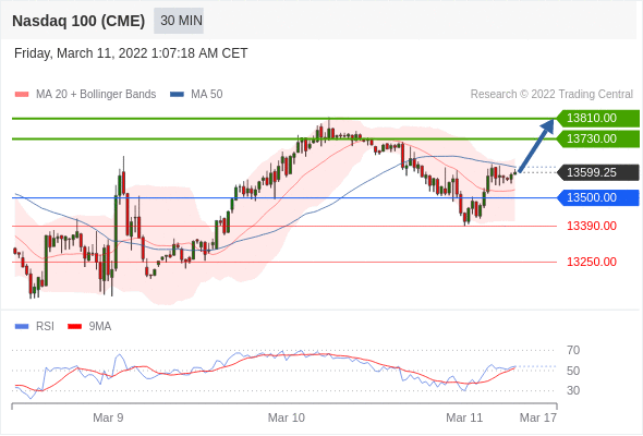 Long positions above 13500.00 with targets at 13730.00 & 13810.00 in extension.