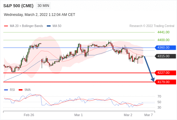 Short positions below 4360.00 with targets at 4227.00 & 4179.00 in extension.