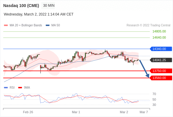 Short positions below 14340.00 with targets at 13750.00 & 13560.00 in extension.