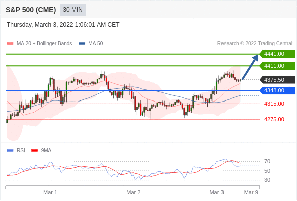 Long positions above 4348.00 with targets at 4411.00 & 4441.00 in extension.
