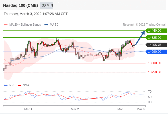 Long positions above 14090.00 with targets at 14325.00 & 14440.00 in extension.