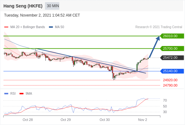 Long positions above 25140.00 with targets at 25700.00 & 26010.00 in extension.