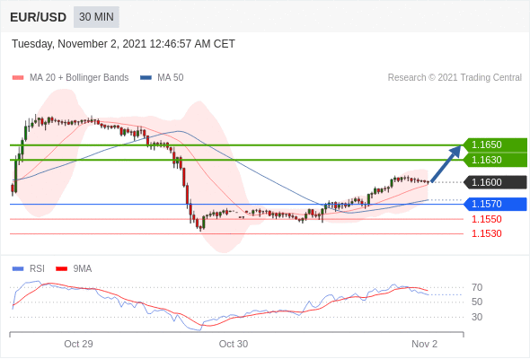 Long positions above 1.1570 with targets at 1.1630 & 1.1650 in extension.