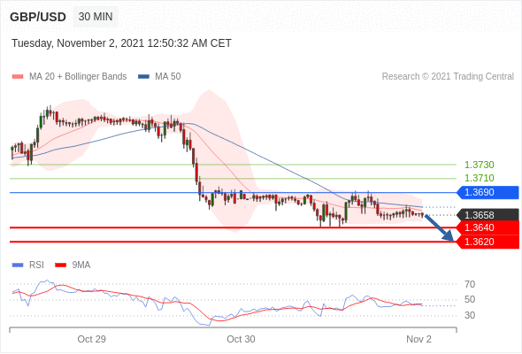 Short positions below 1.3690 with targets at 1.3640 & 1.3620 in extension.