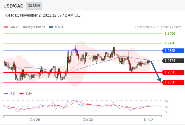 Short positions below 1.2395 with targets at 1.2350 & 1.2330 in extension.