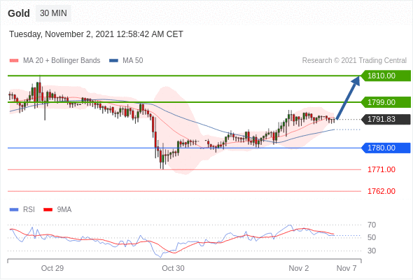 Long positions above 1780.00 with targets at 1799.00 & 1810.00 in extension.