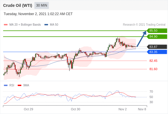 Long positions above 83.35 with targets at 84.90 & 85.50 in extension.