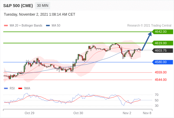 Long positions above 4580.00 with targets at 4619.00 & 4642.00 in extension.