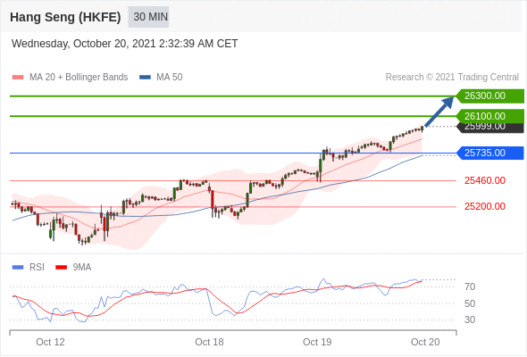 Long positions above 25735.00 with targets at 26100.00 & 26300.00 in extension.