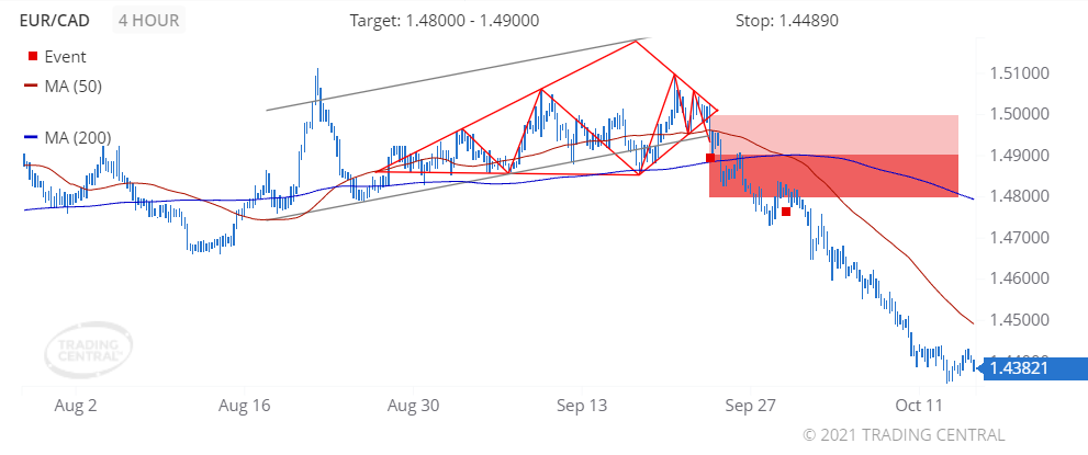 We found a pattern called Diamond Top on 2021 Sep 22 at 17:00 GMT on a 4 hour chart, providing a target price for up to 2 weeks in the range of 1.48000 to 1.49000.