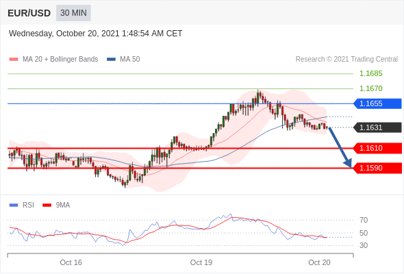 Short positions below 1.1655 with targets at 1.1610 & 1.1590 in extension.
