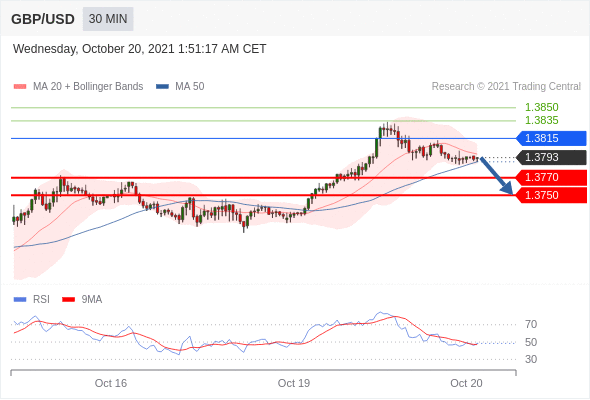 Short positions below 1.3815 with targets at 1.3770 & 1.3750 in extension.