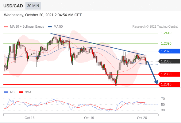 Short positions below 1.2375 with targets at 1.2330 & 1.2310 in extension.