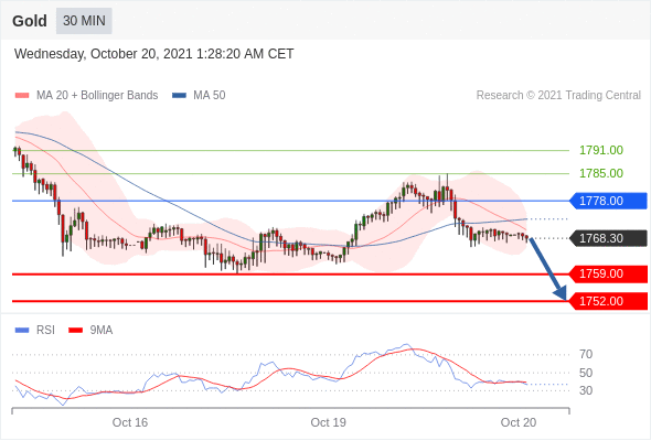Short positions below 1778.00 with targets at 1759.00 & 1752.00 in extension.