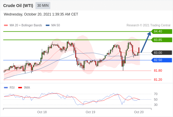 Long positions above 82.50 with targets at 83.85 & 84.40 in extension.