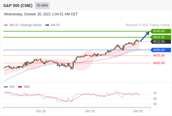 Long positions above 4490.00 with targets at 4524.00 & 4540.00 in extension.