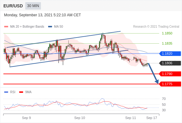 Short positions below 1.1820 with targets at 1.1790 & 1.1775 in extension.