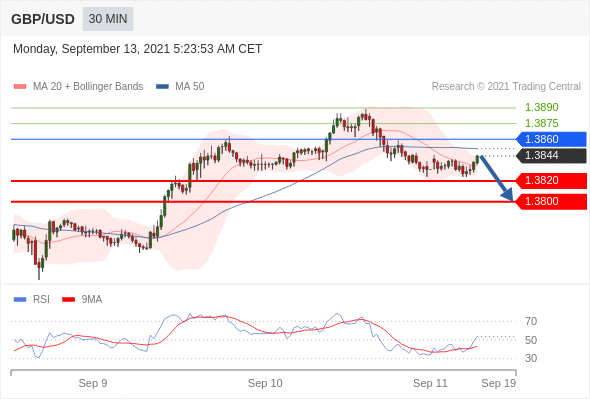 Short positions below 1.3860 with targets at 1.3820 & 1.3800 in extension.
