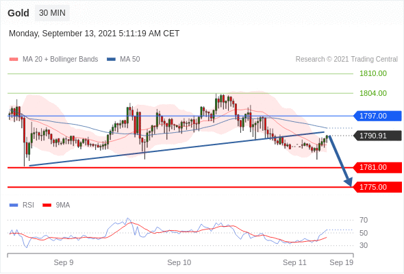As long as the resistance at 1797.00 is not surpassed, the risk of the break below 1781.00 remains high.