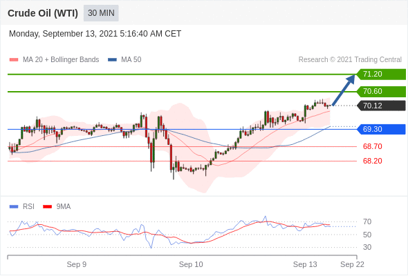 Long positions above 69.30 with targets at 70.60 & 71.20 in extension.