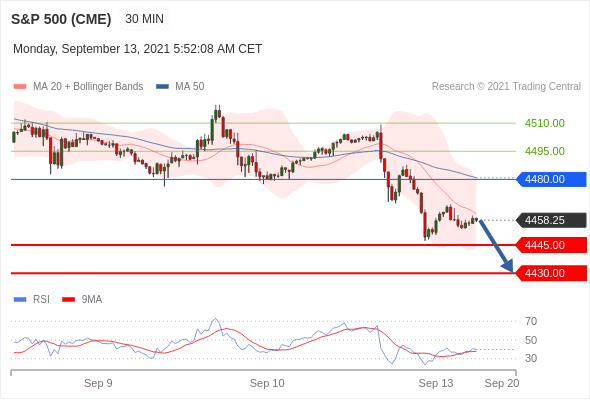 As long as the resistance at 4480.00 is not surpassed, the risk of the break below 4445.00 remains high.