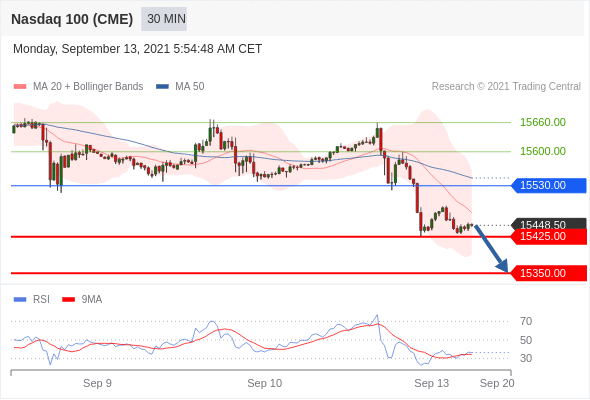 A break below 15425.00 would trigger a drop towards 15350.00.