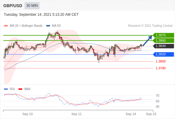 Long positions above 1.3820 with targets at 1.3860 & 1.3875 in extension.