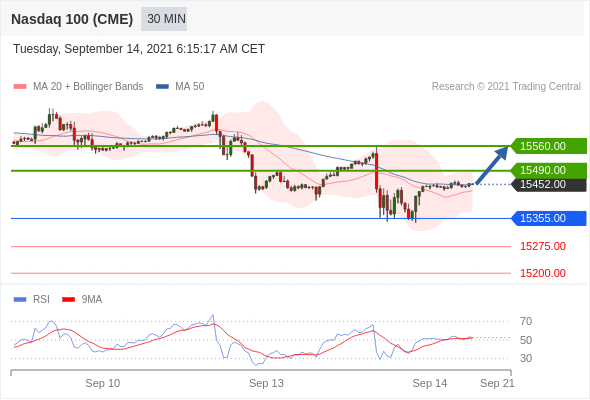 Long positions above 15355.00 with targets at 15490.00 & 15560.00 in extension.