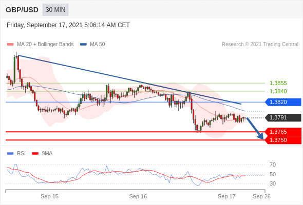 Short positions below 1.3820 with targets at 1.3765 & 1.3750 in extension.