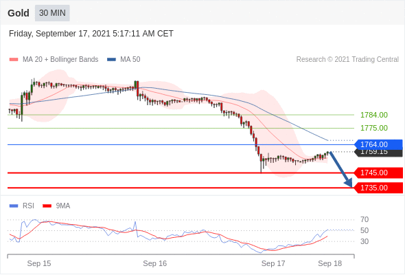 Short positions below 1764.00 with targets at 1745.00 & 1735.00 in extension.