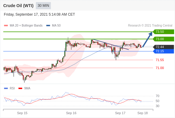 Long positions above 72.15 with targets at 73.00 & 73.50 in extension.