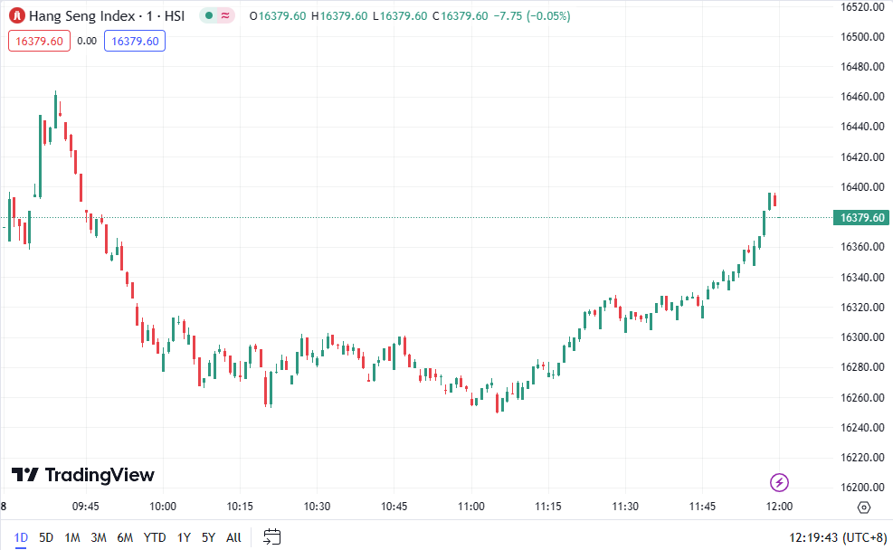 - Hang Seng Index (HSI) increased by 0.21%, closing at 16,379.6 points.