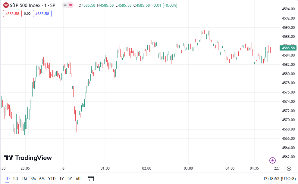 - S&P 500 Index climbed by 36.25 points, up by 0.80%, closing at 4,585.59 points.