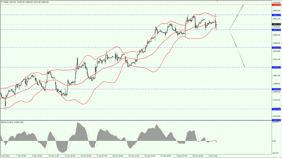 FTSE China A50 focuses on the 14695-line today. If the A50 runs stably below the 14695-line, pay attention to the support strength of the two positions of 14352 and 13970. If the A50 runs above the 14695-line, it will open up further upward space. At that time, pay attention to the two positions of 14985 and 15184.