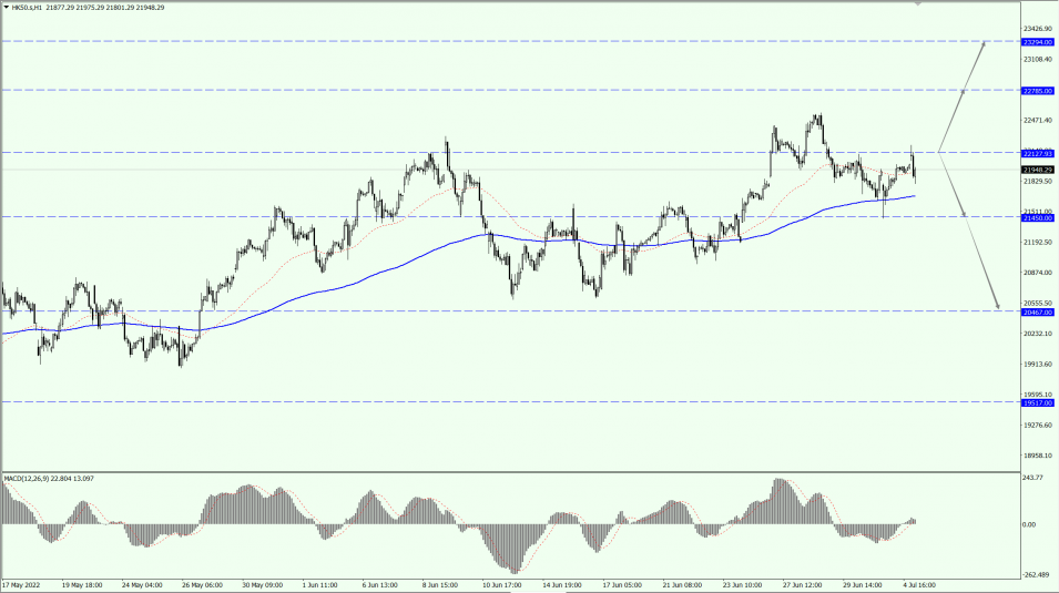 HK50 focuses on the 22127-line today. If HK50 can run stably above the 22127-line, then focus on the suppression strength of 22785 and 23294. If HK50 runs below the 22127-line, then pay attention to the support strength of 21450 and 20467.