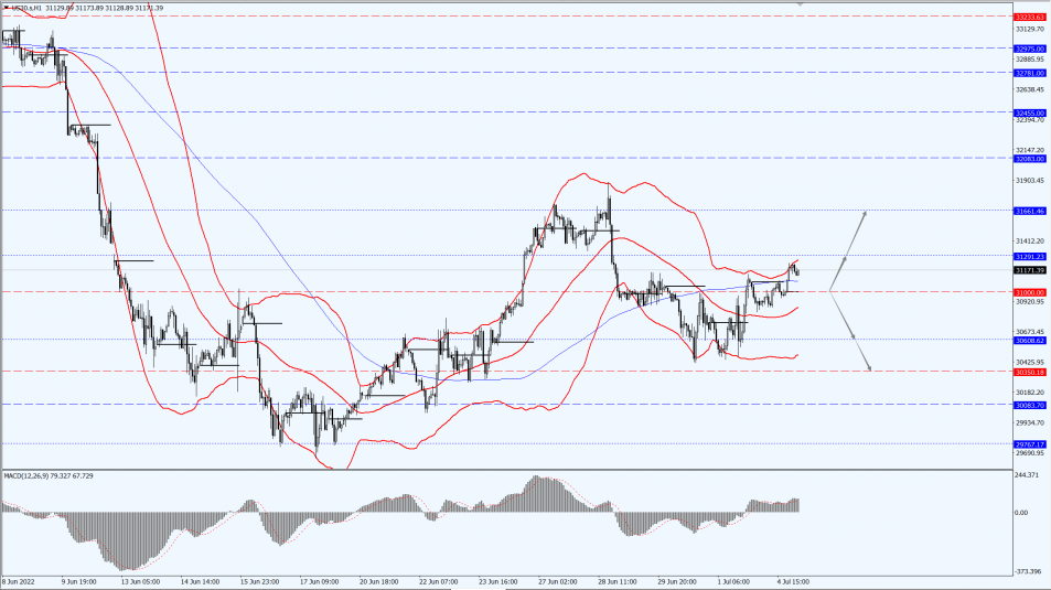 The Dow is focused on the 31000-line today. If the Dow runs steadily above the 31000-line, it will pay attention to the suppression strength of the positions of 31291 and 31661.