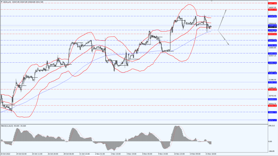 The Dow pays attention to the 33390-line today. If the Dow runs stably above the 33390-line, then pay attention to the suppression strength of the 33949 and 34221 positions.