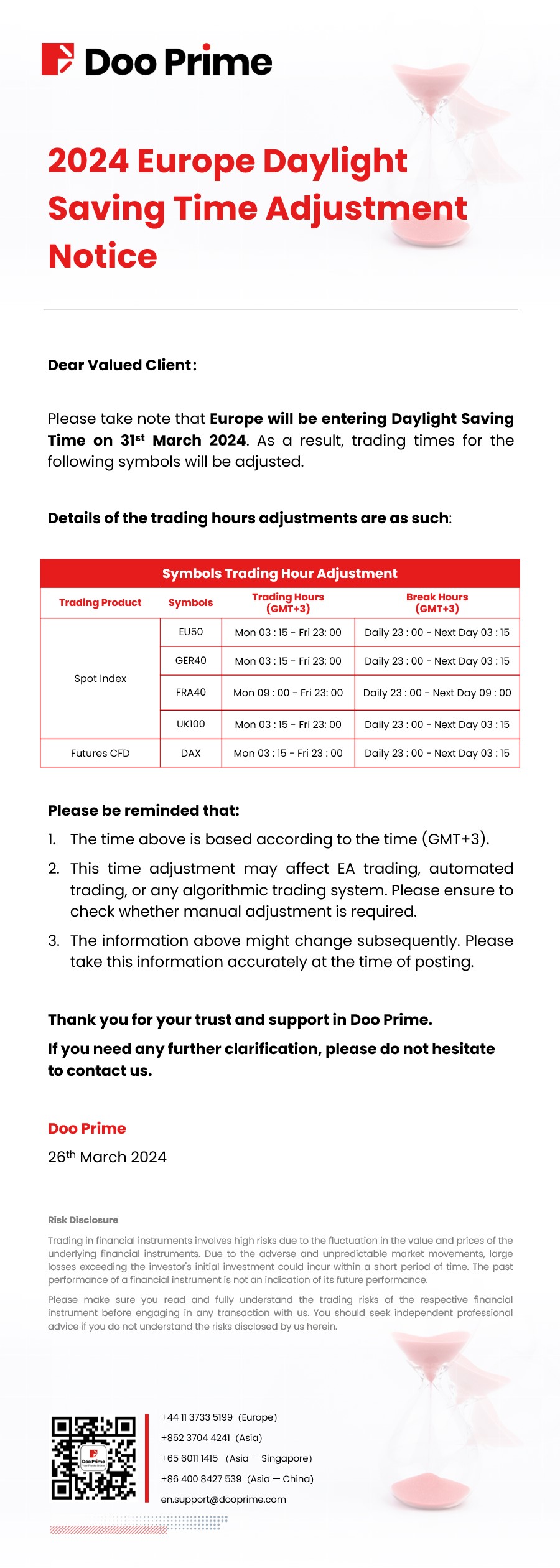 2024-03-26 | Daylight Saving Time , Trading Hours Adjustment