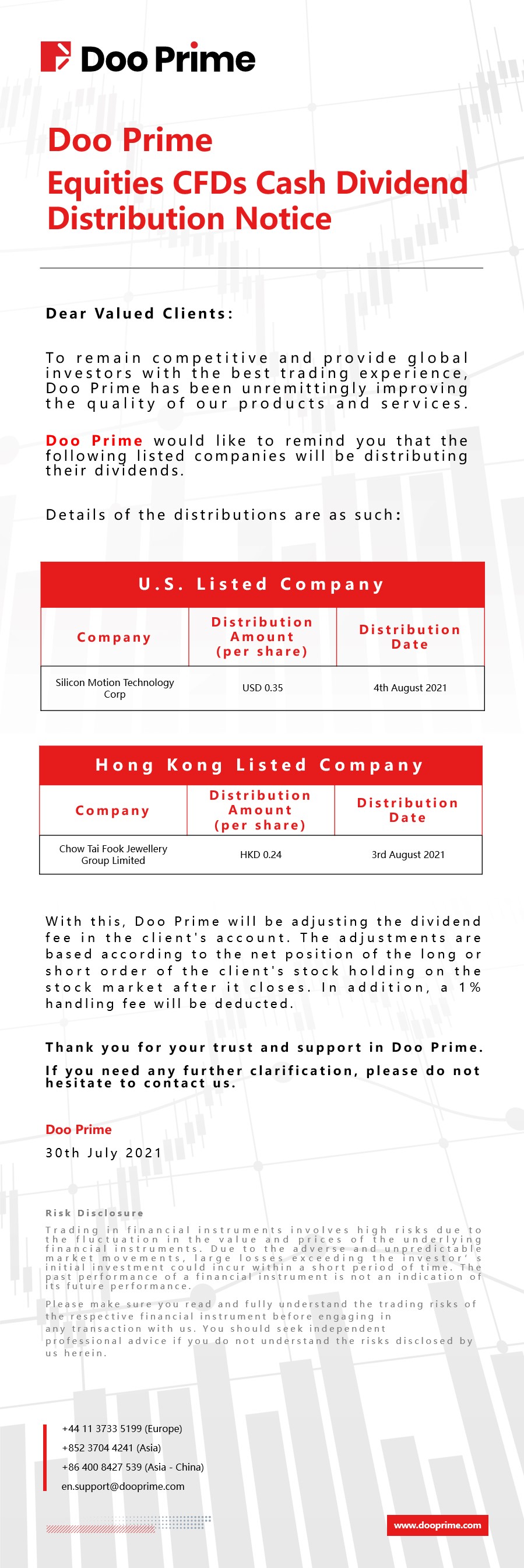 2021-07-30 | Equities CFDs Cash Dividend Distribution Notice