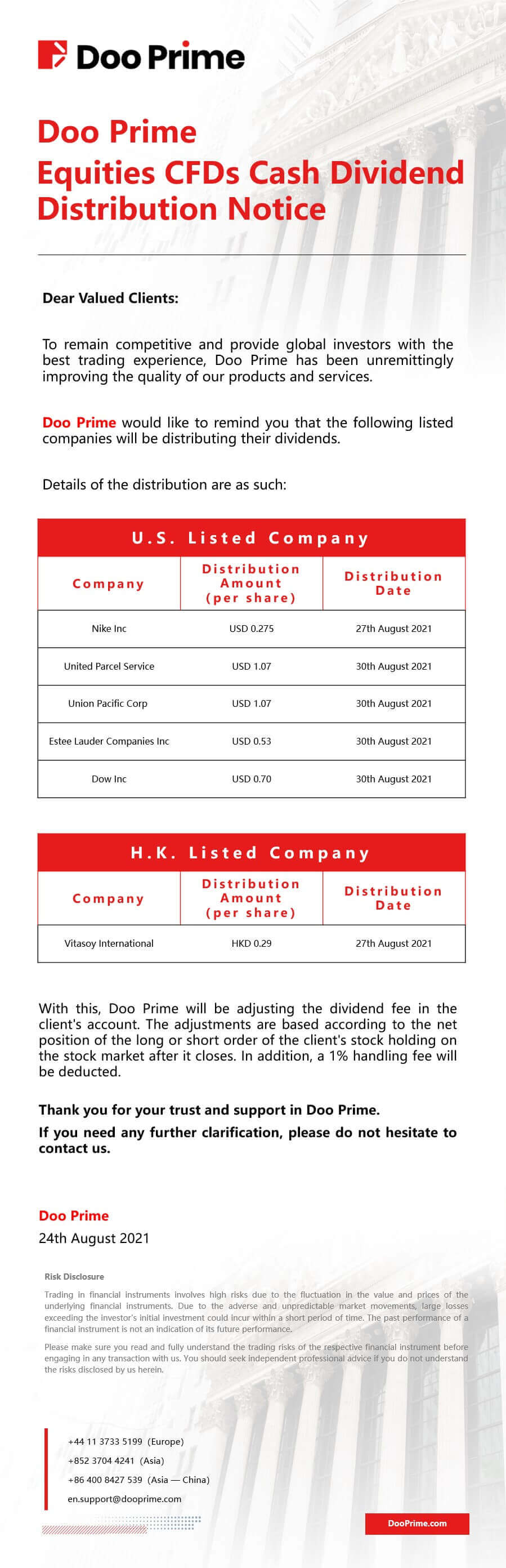 2021-08-24 | Equities CFDs Cash Dividend Distribution Notice
