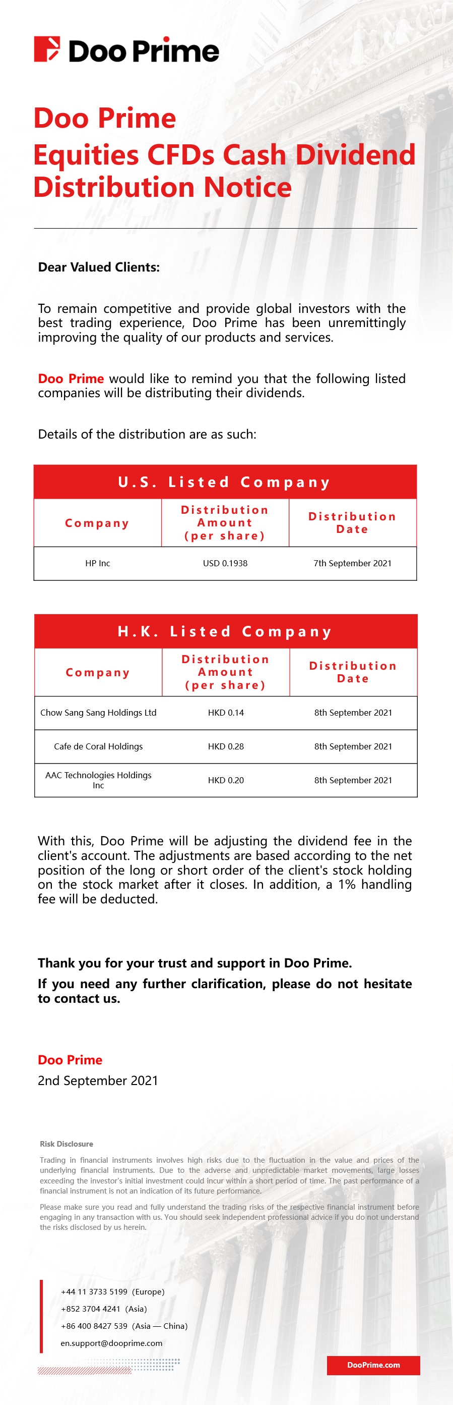 2021-09-02 | Equities CFDs Cash Dividend Distribution Notice