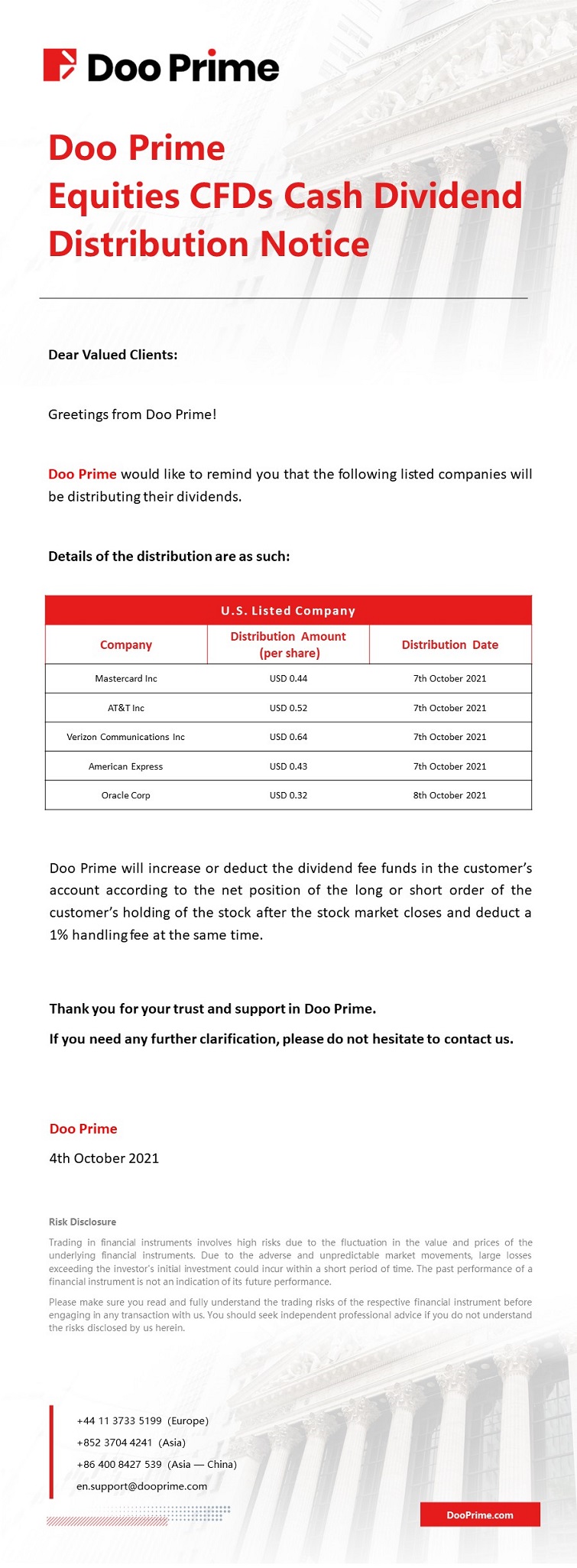 2021-10-04 | Equities CFDs Cash Dividend Distribution Notice