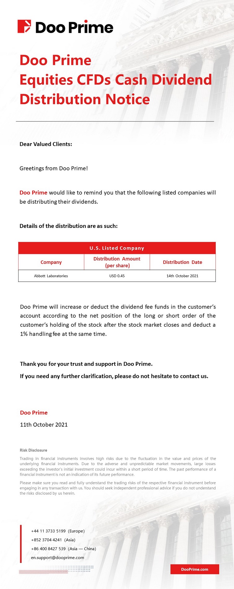 2021-10-11 | Equities CFDs Cash Dividend Distribution Notice