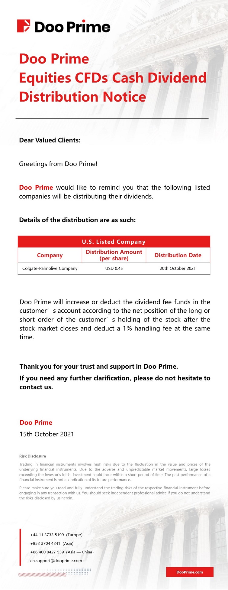 2021-10-15 | Equities CFDs Cash Dividend Distribution Notice