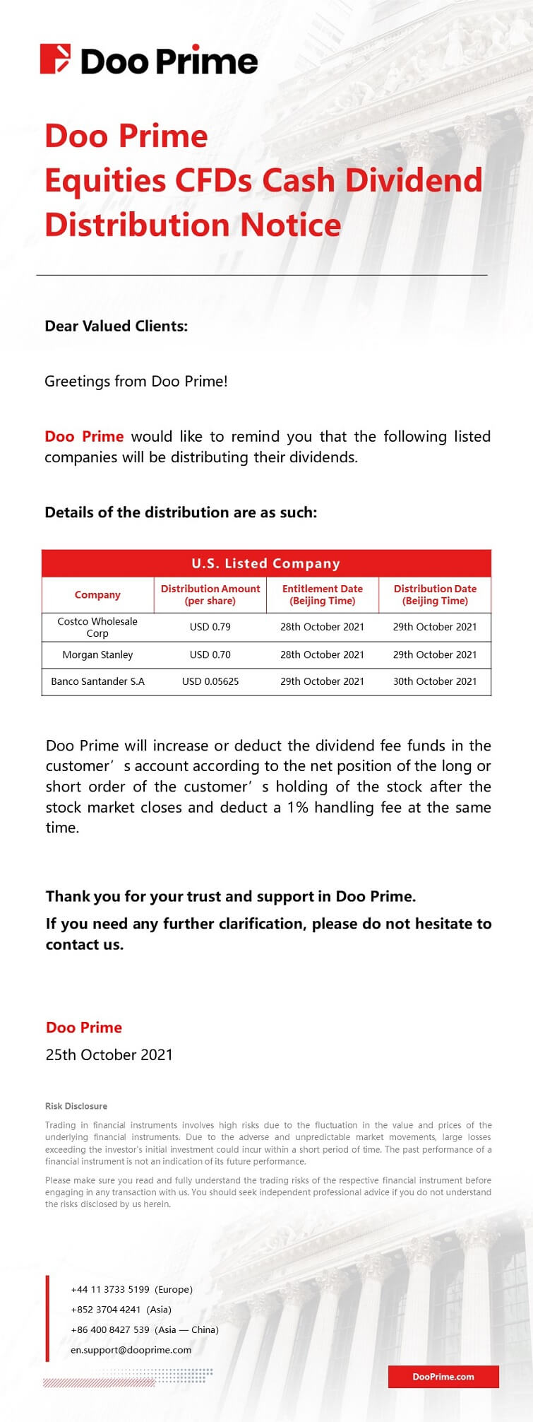 2021-10-25 | Equities CFDs Cash Dividend Distribution Notice , Securities