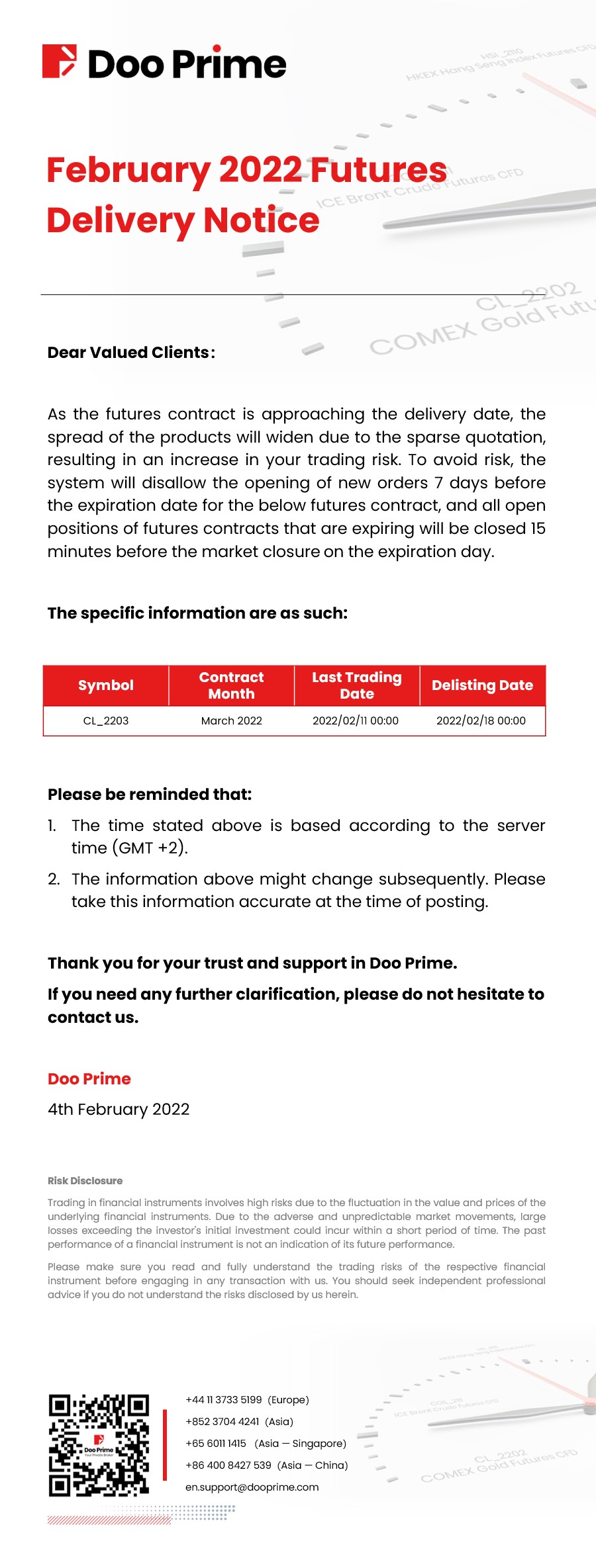 Doo Prime February 2022 Futures Delivery Notice